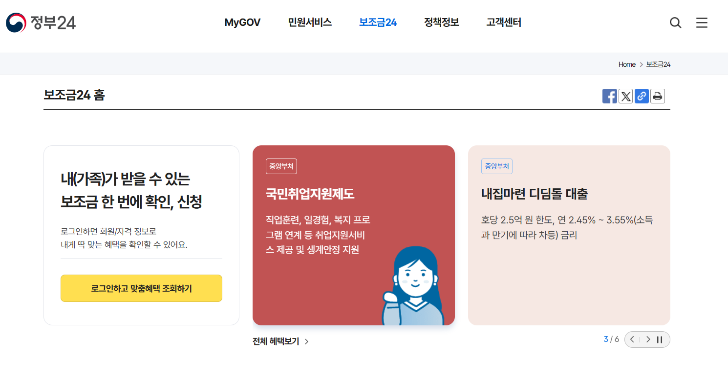 “내가 받을 수 있는 보조금이 뭐가 있을까?” “신청 방법은 어렵지 않을까?” 이런 고민은 이제 그만! ‘보조금24’는 국민 누구나 내가 받을 수 있는 지원금을 한 번에 확인하고 신청까지 가능한 정부 공식 서비스입니다.